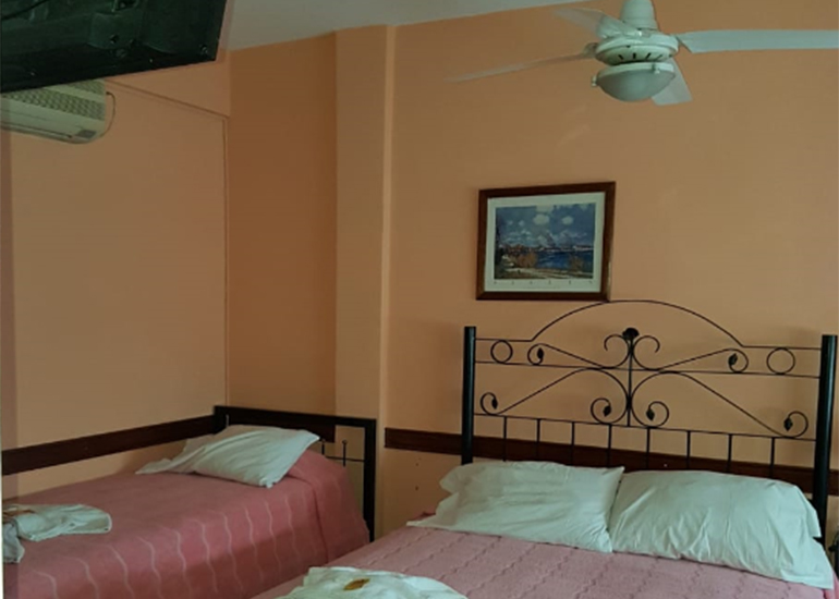 La habitación single o doble es ideal para una o dos personas, cuenta con una cama matriominal o dos camas individuales, cuarto de baño con ducha, televisor LED 32’, aire acondicionado, calefacción, teléfono y Wi-Fi.